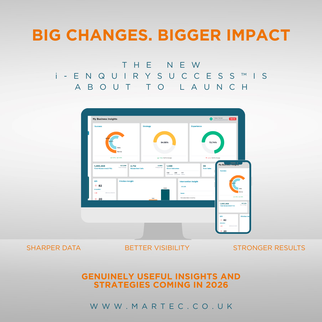 i-EnquirySuccess™ is a refreshed version of our EnquirySuccess™ analytical platform, offering enhanced insights, through AI and human intervention, into how your sales and aftersales teams are handling telephone calls, responding to online or email enquiries, and delivering authentic, professional video messages.