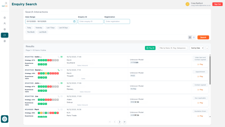 We score each online; live chat conversation or e-mail enquiry against our success matrix, so you can compare your business to hundreds of dealers also using our platform, as well as review your key stats.