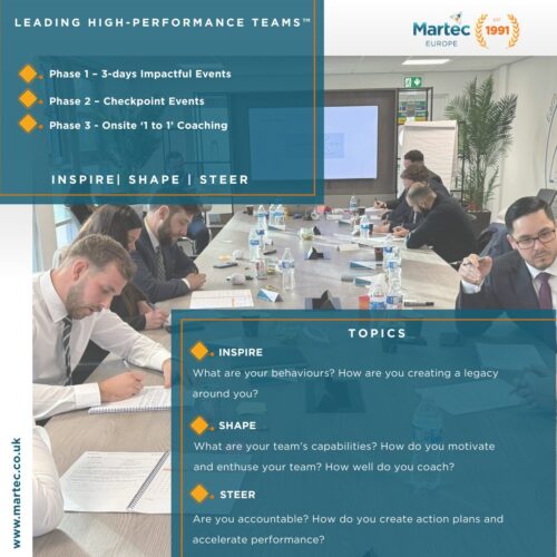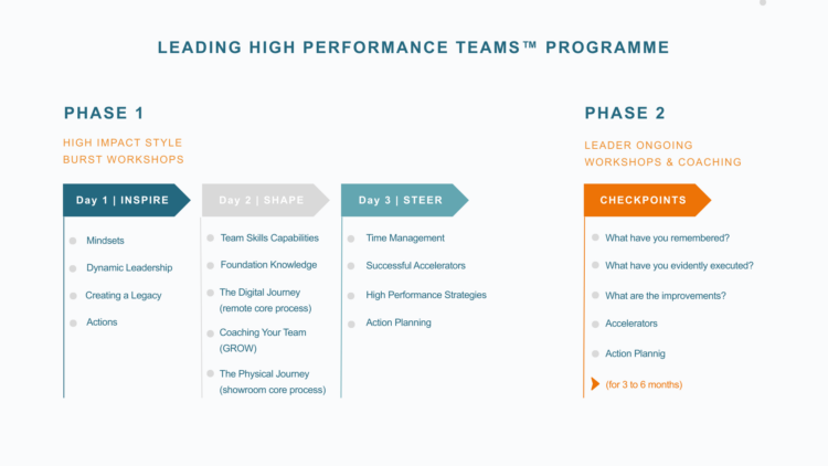 Leading High-Performance Teams™ programme is delivered over a 3-day impactful event, followed by ongoing checkpoint & coaching support.